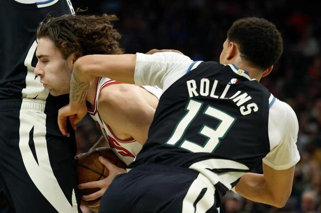 次节较量,波蒂斯轰进远投,特纳封盖许尔特,史密斯2罚1中。布泽利斯、吉迪相继冲击篮下得手,字母哥暴扣还以颜色。特纳轰进三分球,史密斯与科尔安东尼在禁区对轰。库兹马与布泽利斯在外线斗法,特纳上篮得分,芝加哥请求暂停。
